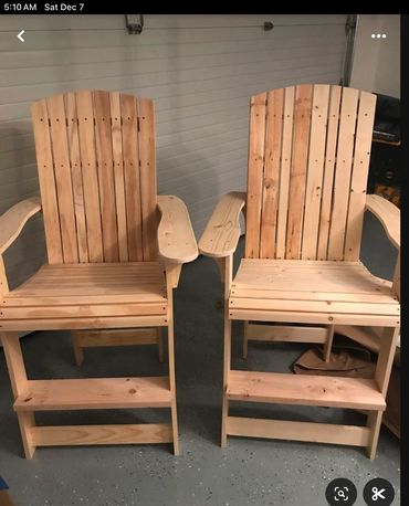Welcome to our custom outdoor furniture shop. When your Outdoor Furniture is ordered , each is an individual hand-crafted piece to that order. Wood is kept nearby, and orders can be filled. Our shop does offer a large variety of wood species and finishes. Chairs vary in size and styles with matching ottomans and tables when ordered. The Historical Wood orders are special and limited due to the very nature of the types. Options to each chair makes your order a one of a kind such as live edge arms or cookie slab backs. Our shop only uses uniformed color, hand-picked woods certified by the FSC.